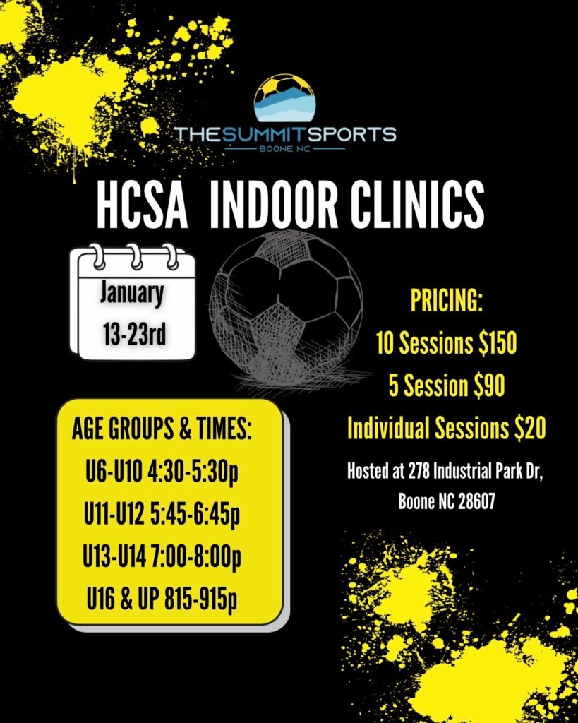 HCSA’s 2026 Indoor Winter Clinic Registration is now open! Please log into your hcsoccer.com account or create an account to register!
